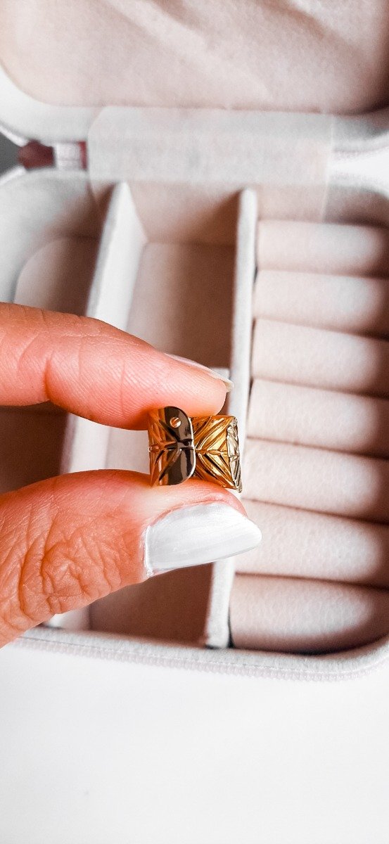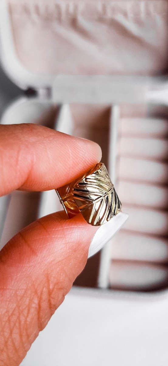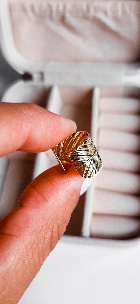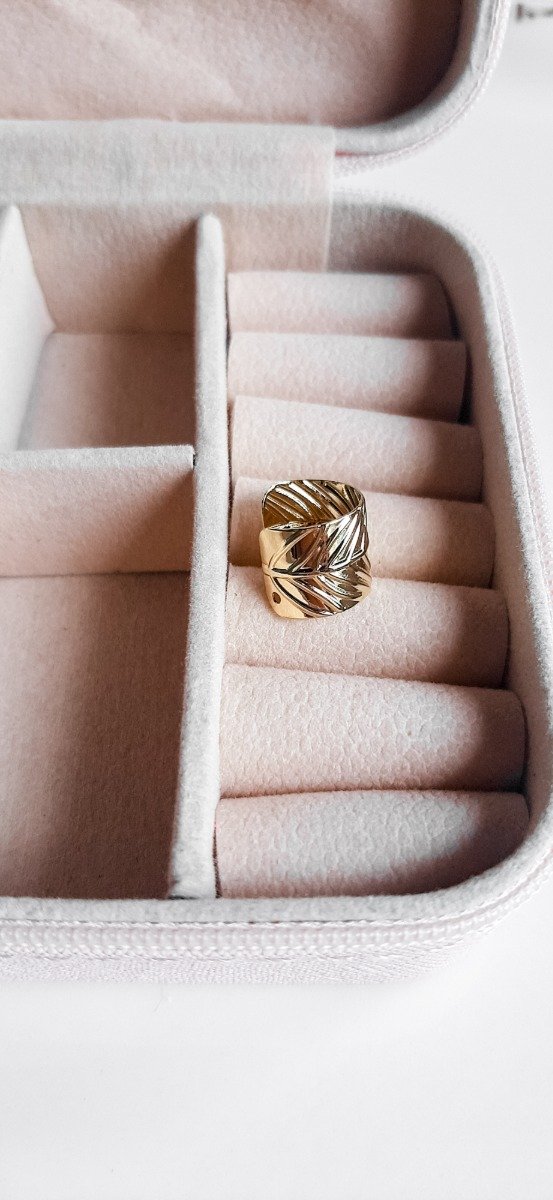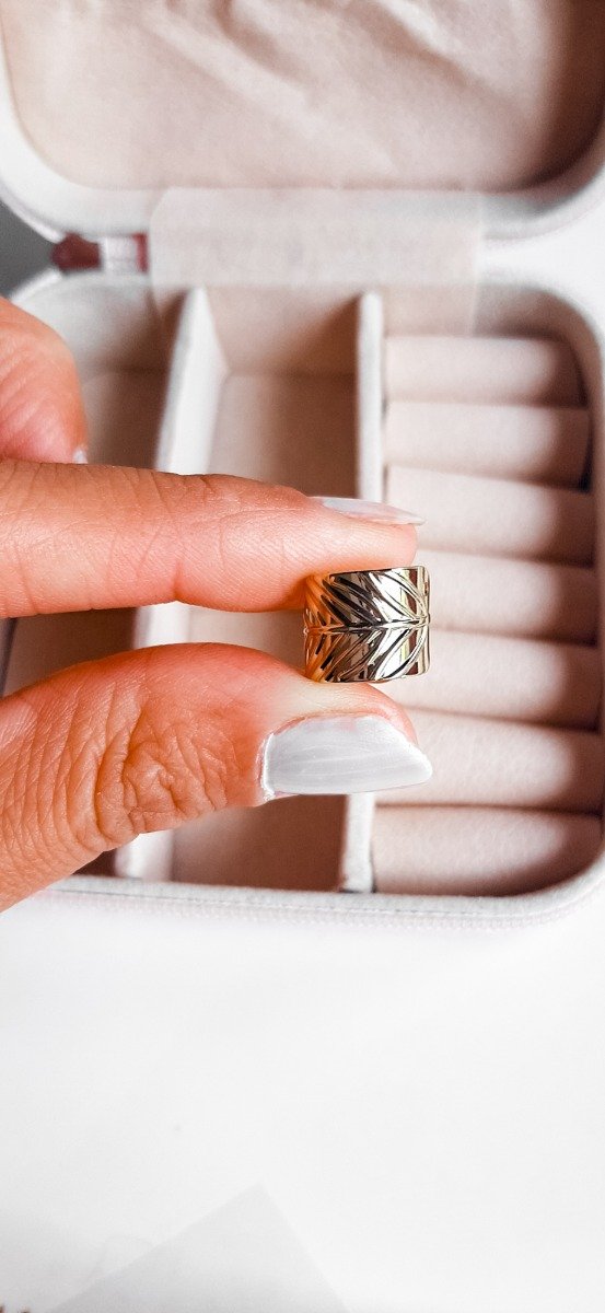 Ear cuff con forma de hoja en acero dorado